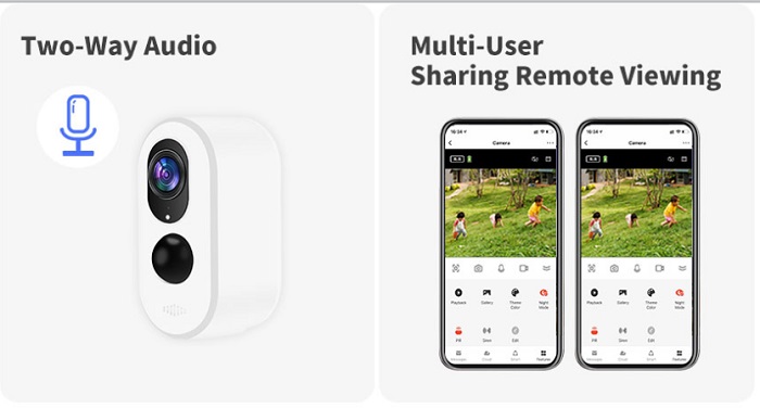 - Two way voice: monitoring recording, real-time intercom;